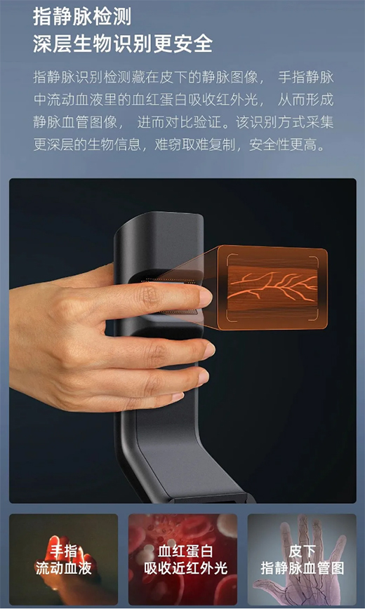 ? 難竊取、難復制。指靜脈在皮膚下面,相比皮膚表面的指紋,更難竊取、不易復制。