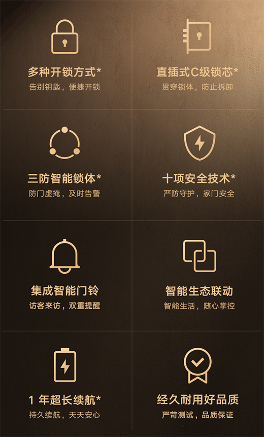 作為米家智能家居生態(tài)的重要單品之一,小米智能門鎖E10還將給用戶帶來(lái)更多智能家居聯(lián)動(dòng)體驗(yàn)——比如有人按門鈴時(shí),米家APP將收到門鈴提醒;搭配藍(lán)牙網(wǎng)關(guān)之后,還可與米家生態(tài)中的其他智能家居設(shè)備聯(lián)動(dòng),實(shí)現(xiàn)回家開門即開燈、開空調(diào),出門按下前面板一鍵布防按鍵,即可自動(dòng)關(guān)閉智能家電、風(fēng)扇等,同時(shí)掃地機(jī)器人自動(dòng)工作。
