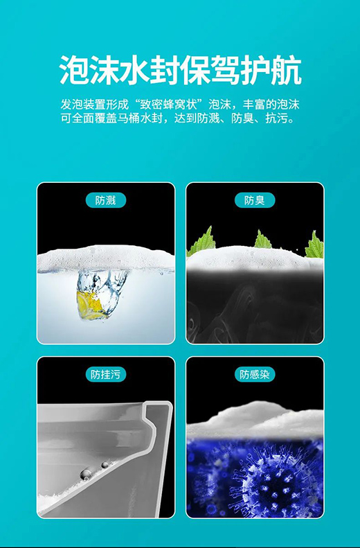 S9智能馬桶升級了一個神仙功能,就是泡沫盾,不僅可以防濺水,還能防臭防感染。綿密的泡沫層可以有效的把臭味和細菌隔離在泡沫之下,拉完臭臭還能暢快呼吸的衛(wèi)生間,就屬你家的啦~