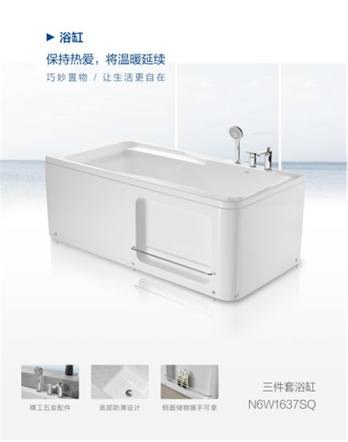 寒冷的冬天,除了恒溫花灑來拯救,小編還要推薦一款寒冬必備神器——安華衛(wèi)浴三件套浴缸N6W1637SQ,設(shè)計和功能都讓您在大冬天隨心所“浴”,現(xiàn)代簡約風(fēng)格,線條流暢,適配多種家居風(fēng)格。裙邊置物功能設(shè)計,合理利用空間,沐浴用品拿取便捷。它采用環(huán)保亞克力板材,具有良好的抗污性能,既方便日常清洗,又能持久保溫,保養(yǎng)方便。大冬天沉浸在浴缸里,使全身的穴位得到刺激,排除囤積的毒素和贅肉,增強血液及淋巴液的循環(huán),既可以讓身心得到放松,又可以享受健康舒適的泡澡。