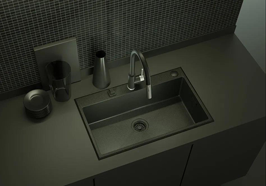 普樂美設計師從滿是繁星的夜空裁剪出一角,化為精巧的工藝品——黑金砂水槽,讓我們每一次進入廚房,不管烹飪或洗碗,都能重溫孩時看見星辰大海的驚艷心情。