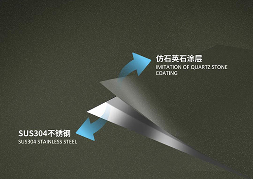 表面仿石英石涂層采用特殊工藝處理,還原天然石材磨砂質感,手感舒適,莫氏硬度高達8H以上,不容易產生劃痕;涂層附著力強,抗沖擊性能優(yōu)異,不容易掉落;耐酸耐堿,不易變色,不易沾污,日常保養(yǎng)方便;耐高溫,防凍裂,物理性能穩(wěn)定,高顏值持續(xù)在線。