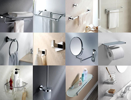 如放置換洗衣物的浴巾架,晾曬毛巾的毛巾?xiàng)U,放置廁紙的廁紙架,馬桶清潔搭檔馬桶刷架,淋浴間瓶瓶罐罐的歸屬置物架。