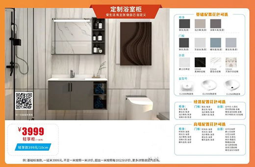 愛生活,有主張,做自己,自定義?;顒悠陂g,浪鯨衛(wèi)浴推出簡約輕奢款定制浴室柜,優(yōu)惠好價3999元起,為不同需求的消費(fèi)人群貼心提供基礎(chǔ)、經(jīng)濟(jì)、高端,三種定制計劃,按需選購個性定制,省心省力煥新潮衛(wèi)。