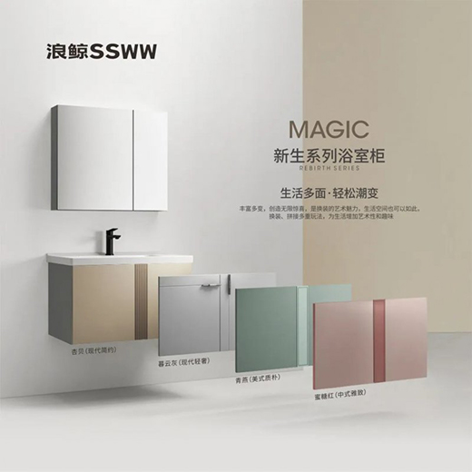 生活多面,輕松潮變。2022浪鯨衛(wèi)浴爆款新品Magic-新生系列,重構(gòu)全衛(wèi)空間定義,全新演繹微定制時代,實(shí)現(xiàn)一款浴室柜,多重風(fēng)格自由變裝。