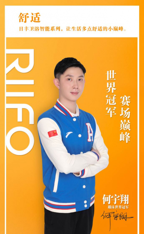 日豐衛(wèi)浴和世界蹦床冠軍何宇翔,一個(gè)是年輕時(shí)尚的衛(wèi)浴品牌,一個(gè)是活力朝氣的陽(yáng)光男孩;一個(gè)是關(guān)注質(zhì)量、硬磕技術(shù)的實(shí)力派品質(zhì)企業(yè),一個(gè)是拼搏進(jìn)取、追求完美的世界冠軍,兩者的聯(lián)手可謂珠聯(lián)璧合。