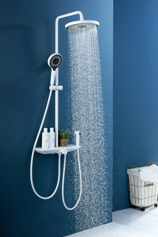 這樣我們開啟“浴室KTV”模式時(shí),就能夠盡情享受洗澡的快樂,而不用那么擔(dān)心水費(fèi)的問題了~,TA除了省水黑科技,這些優(yōu)點(diǎn)能讓夏日洗澡更暢快,沒有大頂噴的淋浴,是沒有靈魂的,希箭沁霖系列A6P花灑套裝,擁有10英寸超大頂噴,讓你體驗(yàn)在“瀑布”下淋浴的感覺,夏日洗澡超爽 超暢快!