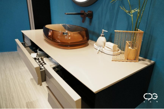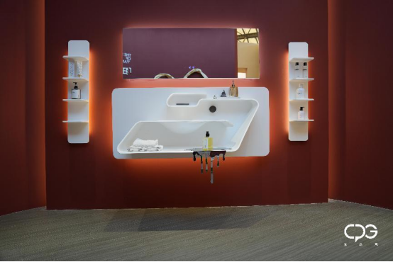 這次展示的部分新品浴室柜,更是以人造石+木材的形式來呈現(xiàn)CPG創(chuàng)品高全案衛(wèi)浴的獨(dú)特美學(xué)。剛硬的人造石與溫潤(rùn)的木,兩種截然不同的材質(zhì),結(jié)合多重技術(shù)和工藝,在CPG創(chuàng)品高全案衛(wèi)浴的獨(dú)特設(shè)計(jì)下,展現(xiàn)出協(xié)調(diào)和諧的剛與柔的交融相依,在全新的角度下,勾勒出獨(dú)屬于CPG創(chuàng)品高全案衛(wèi)浴的極簡(jiǎn)美學(xué)。