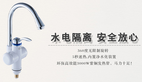 電熱水龍頭產(chǎn)品具有快速(3-5秒鐘出熱水);方便(無須專人安裝、即開即熱、冷熱兩用、溫度流量可調(diào));安全(無水自動(dòng)斷電、水電分離設(shè)置);節(jié)能環(huán)保(省水省電、無污染);美觀(時(shí)尚設(shè)計(jì)、家居裝飾);小巧(不占空間);多功能(磁化、凈化);經(jīng)濟(jì)實(shí)惠(相比熱水器或是其他的電加熱裝置)等特點(diǎn),是現(xiàn)代家庭生活必備的廚衛(wèi)小家電用品。