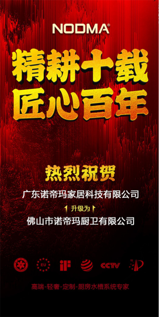 胸懷百年偉業(yè),恰是風華正茂,熱烈慶祝佛山市諾帝瑪廚衛(wèi)有限公司升級為廣東諾帝瑪家居科技有限公司。此舉標志著諾帝瑪更加明確自身地位,立志成為高端智能廚房水槽系統(tǒng)專家,打造諾帝瑪臻品,筑夢臻品諾帝瑪,為中國家用廚房打造專業(yè)、高檔、輕奢、精致的高端智能廚房水槽系統(tǒng)解決方案。