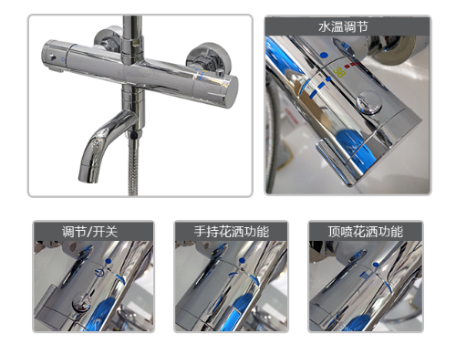 安華衛(wèi)浴淋浴花灑an2H1818SC,龍頭本體采用法國VERNET恒溫閥芯,設計了多層濾網(wǎng),有效防止閥芯堵塞。并且采用五層電鍍技術處理,光亮易潔,永不褪色,經(jīng)久耐用。雙把三功能設計,造型時尚簡約,性價比高。