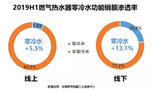 為了解決產(chǎn)品的這個痛點,2017年市面上開始出現(xiàn)了以“零冷水”為賣點的產(chǎn)品。“零冷水”熱水器的工作原理是通過循環(huán)泵和單向閥把家里的水路循環(huán)起來,讓熱水器加熱后的水在管道中流動,從而實現(xiàn)出水即熱水的效果。2019年零冷水熱水器產(chǎn)品出現(xiàn)了兩大新趨勢——價位下探和容積數(shù)增大,價位從去年同期的均價5000-6000元,到今年3500-4000元的價位段成為主流。同時無論是線上還是線下,帶零冷水功能的產(chǎn)品出水量基本都在16L以上。價位和容積的“一下一上”趨勢,說明零冷水的功能在加速滲透與普及。這也是熱水器的“熱”的本質(zhì)功能的一個體現(xiàn)。