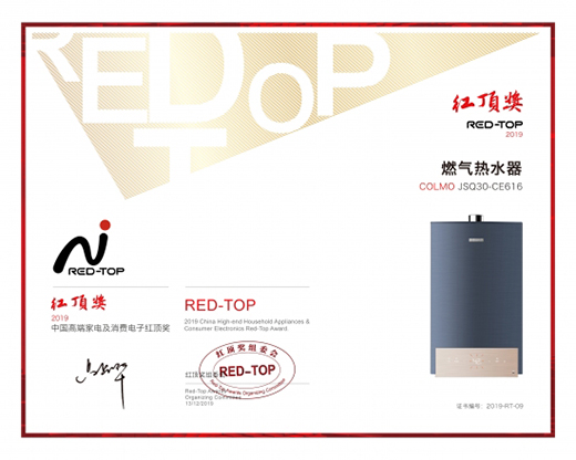 12月13日,由中國家用電器協(xié)會指導、紅頂獎組委會主辦的“第10屆中國高端家電趨勢發(fā)布暨紅頂獎頒獎盛典”在京舉行。COLMO JSQ30-CE616憑借其優(yōu)秀的外觀設計搭配高端的功能,在眾多產品中斬獲紅頂獎熱水器大獎殊榮。