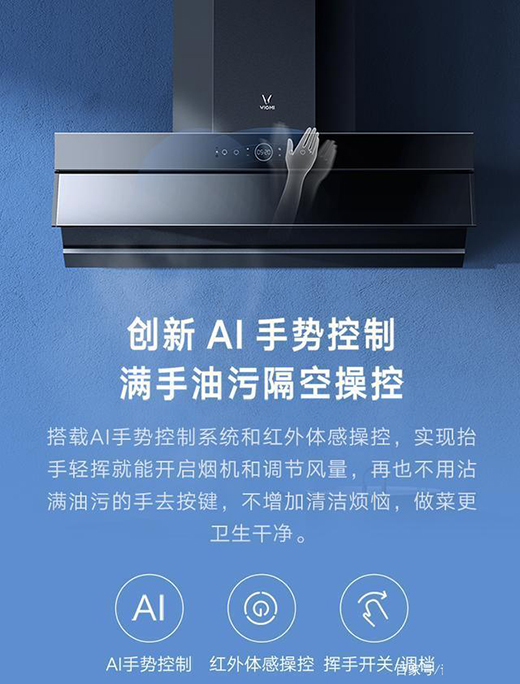 當(dāng)然,云米互聯(lián)網(wǎng)煙灶套裝Flash的智能化不止于此,它還加入了手勢(shì)操控模塊,只需要揮一揮手就可以開啟、關(guān)閉油煙機(jī),也可以控制風(fēng)量。無需抬頭查看觸控板和按鍵位置即可完成操作,讓烹飪的過程更加隨心輕松,再也不用擔(dān)心沾滿油污的手讓油煙機(jī)的操控面板變得油膩無比。