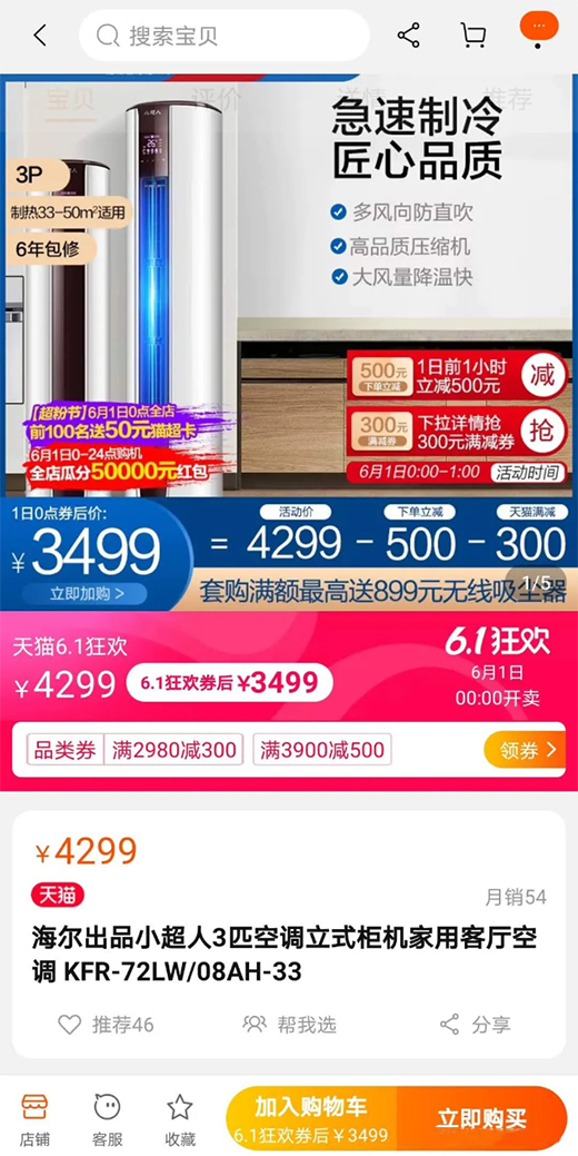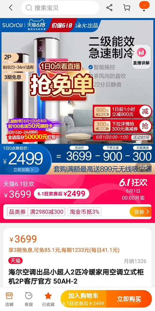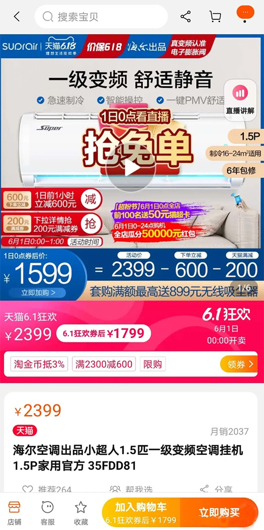 5月31日晚20點-24點是海爾家電品牌巔峰狂歡夜,在此期間貨品最豐富,價格也是非常低的。