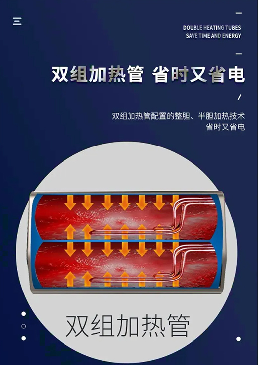 它采用雙組加熱管配置的整膽、半膽加熱技術(shù),額定功率高達(dá)3200W,熱水加熱速度快,成功解決用戶洗浴時長時間等待熱水的煩惱,省時又省電。