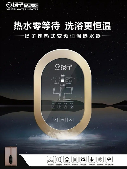 揚(yáng)子- S25速熱式電熱水器配備25升大容量,零延時(shí)出水速熱系統(tǒng);智能變頻恒溫,高溫抑菌,磁濾水,讓用戶凈享健康沐浴暢快體驗(yàn);特設(shè)30Min無操作休眠模式,更加節(jié)能省電;配備全新英格萊840加熱體,使用壽命更長(zhǎng)久。內(nèi)置漏電環(huán)、雙外置防電墻防護(hù),集防濺 、防干燒 、防超溫保護(hù)以及多重沐浴安全保障為一體,出水量大,加熱迅速,不受天氣及使用人數(shù)限制,四季恒溫,省時(shí)省電,可實(shí)現(xiàn)多路供水,受到了廣大消費(fèi)者的熱烈歡迎。