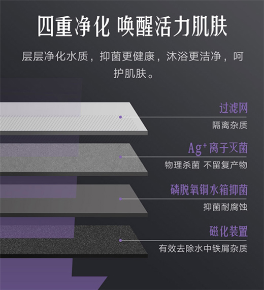 沐浴不僅是為了放松身心,更是保持皮膚健康的必要方式。雖然日常沐浴很多人會使用抑菌沐浴露,但不干凈水質(zhì)造成的皮膚二次污染往往被忽略。云米互聯(lián)網(wǎng)Zero燃氣熱水器貼心考慮到這一點,配備了過濾網(wǎng)、Ag離子滅菌、磷脫氧銅水箱抑菌、磁化裝置四重凈化,高效隔離水中雜質(zhì),殺菌抑菌達99.99%,再搭配創(chuàng)新磁化技術(shù),水質(zhì)潔凈,呵護嬌嫩肌膚,為健康沐浴添一層保障。