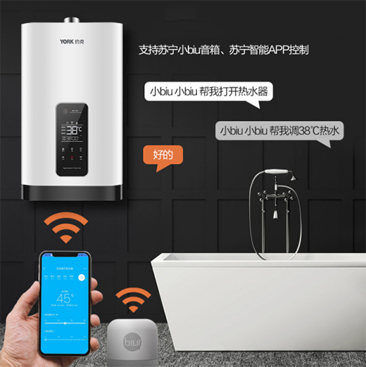 YORK約克零冷水燃?xì)鉄崴鱕K-FT3基于Biu系統(tǒng),可通過蘇寧智能APP和小Biu音箱實(shí)現(xiàn)多種遠(yuǎn)程操控方式,提前預(yù)約熱水、調(diào)節(jié)溫度等。有時(shí)只需一句話的事兒,即可開啟智能沐浴新生活,體驗(yàn)智能家居樂趣。