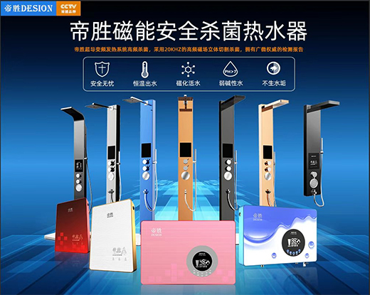 公司“帝勝DESION”品牌電器,給您和您的家庭帶來不一樣的科技便捷之風(fēng)。公司主營健康創(chuàng)新家電,身邊的水和空氣是我們關(guān)注的焦點(diǎn)。我們調(diào)查了全國1000多個(gè)家庭,將意見融入產(chǎn)品中,深入調(diào)查消費(fèi)者的淋浴到洗浴升級(jí),從安全、水質(zhì)處理、美觀、操作、功能、智能創(chuàng)新了磁能熱水器,產(chǎn)品具有磁化活水護(hù)膚、高頻殺菌健康、無極變頻節(jié)能、水電分離安全的功能,世界技術(shù)領(lǐng)先的磁能熱水器,真正解決傳統(tǒng)熱水器的安全隱患問題。安全健康水處理,產(chǎn)品覆蓋家用、商用、工業(yè)磁能水處理,磁能采暖爐、磁能即熱式電熱水器、磁能儲(chǔ)水式電熱水器、磁能集成熱水器、商用磁能熱水、集成水槽、飲水機(jī)等創(chuàng)新產(chǎn)品,呵護(hù)您的安全和健康。