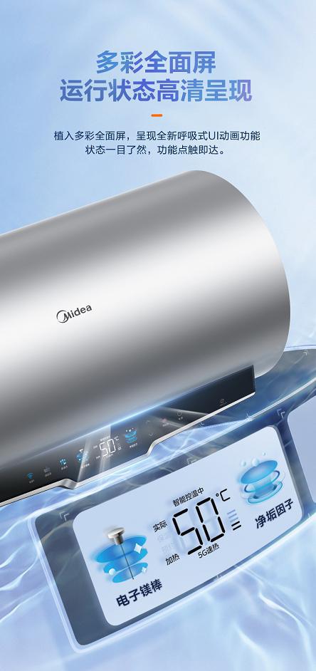 電熱水器作為現(xiàn)代家庭的標(biāo)配,其使用壽命、水質(zhì)健康、加熱速率等關(guān)乎人們的沐浴品質(zhì)生活。然而傳統(tǒng)電熱水器鎂棒消耗,會(huì)產(chǎn)生大量鎂渣水垢,不僅影響水質(zhì)健康,而且還會(huì)腐蝕內(nèi)膽造成漏水,給用戶沐浴生活帶來很大困擾。為了解決用戶痛點(diǎn),美的顛覆技術(shù)革新,創(chuàng)新推出恒凈電熱水器TF7,搭載電子鎂棒無渣無垢黑科技、智能監(jiān)測(cè)殺菌、多彩全面屏、3200W渦旋速熱、9倍增容大水量等諸多創(chuàng)新科技,輕松解決鎂棒頻繁更換、水質(zhì)健康、熱浴加熱慢、儲(chǔ)水容量小等難題,為用戶帶來恒凈好水質(zhì),開啟健康凈膚沐浴新體驗(yàn)。