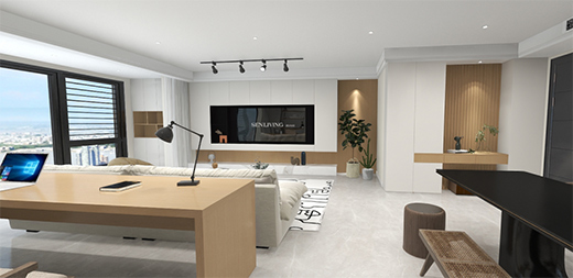 技巧3:功能房功能房之所以被稱為功能房,就是因?yàn)橐粋€(gè)房間可以同時(shí)滿足多種需求。在功能房定制半開放式書柜,兼具收納書籍資料、展示擺件的功能,搭配同系列書桌椅,風(fēng)格統(tǒng)一更美觀,輕松實(shí)現(xiàn)在家辦公需求。