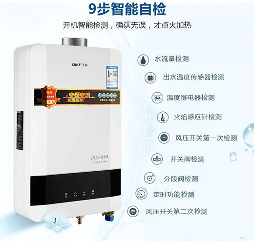 當(dāng)代產(chǎn)品愈發(fā)智能,而智能不僅體現(xiàn)在其科技含量、便捷程度的提升,通過自檢功能提升產(chǎn)品安全系數(shù)更是另一個(gè)重要體現(xiàn)。千科“智恒系列”恒溫?zé)崴魅谌胨髁繖z測(cè)、出水溫度傳感器檢測(cè)、溫度繼電器檢測(cè)、火焰感應(yīng)針檢測(cè)、風(fēng)壓開關(guān)第一次檢測(cè)、開關(guān)閥檢測(cè)、分段閥檢測(cè)、定時(shí)功能檢測(cè)以及風(fēng)壓開關(guān)第二次檢測(cè)等九大智能自檢功能,保證在使用千科熱水器的過程中絕對(duì)安全,讓消費(fèi)者用得放心,用得舒心!