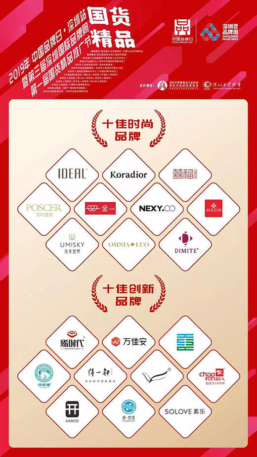 2019年5月10日,“第一屆國(guó)貨精品推廣節(jié)”在深圳福田區(qū)舉辦啟動(dòng)儀式,現(xiàn)場(chǎng)發(fā)布了國(guó)貨精品推廣節(jié)系列品牌榮譽(yù)榜單,并為上榜企業(yè)頒獎(jiǎng)。