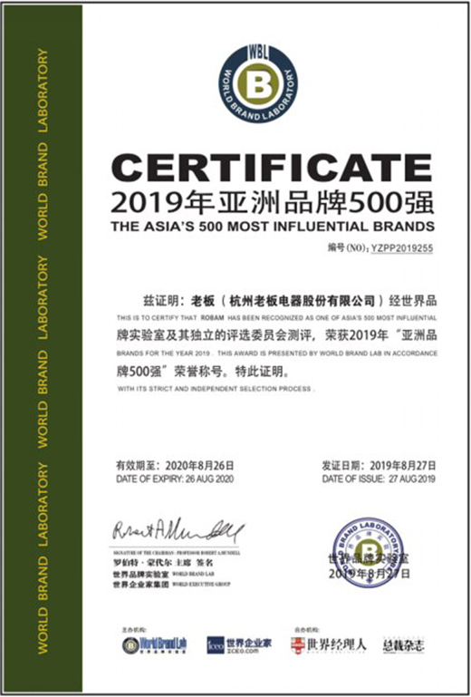 (老板電器入選2019《亞洲品牌500強(qiáng)》)