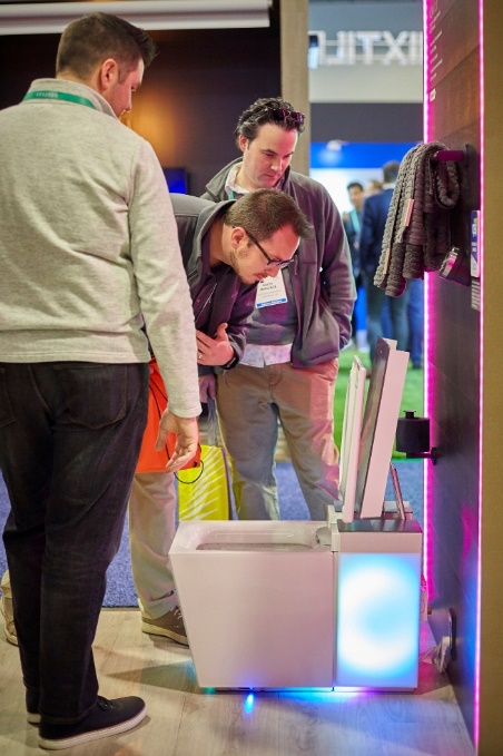 在此次展覽上的紐密2.0智能座便器,是科勒最高端的智能座便器,更是獲得了2020年度CES創(chuàng)新獎(jiǎng)。它具有超高水效、個(gè)性化清潔和暖風(fēng)烘干、加熱座圈以及高品質(zhì)音響,伴隨著動(dòng)感的多彩燈光和律動(dòng)的音樂效果,讓用戶在衛(wèi)生間也能擁有極致體驗(yàn)。