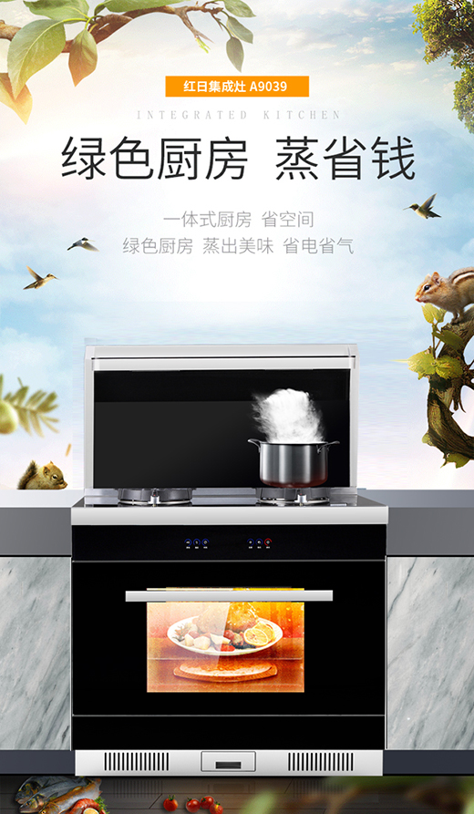 紅日紅外線一體式集成灶A9039,將采用了紅日自主研發(fā)的紅外光波技術、熱效率高達68%的紅外線燃氣灶、吸凈率可達99.96%的大吸力煙機和全方位熱能包裹的8種烹飪模式蒸箱,創(chuàng)新地有機結合為一體,給用戶帶來便捷、健康、安全的烹飪體驗。同時,其具有煙灶聯(lián)動、煙蒸聯(lián)動、防回火保護、定時防干燒、漏電保護等多項安全設計,告別廚房危險,真正做到讓消費者用得放心。