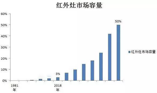 隨著新生代消費勢力的快速崛起,節(jié)能環(huán)保、科技時尚、智能便捷的高端廚衛(wèi)產(chǎn)品形成了新的需求熱點。更值得關注的是,節(jié)能、低碳的紅外灶,越來越受到消費者青睞以及政府的重視和支持。目前紅外灶的市場銷量增速明顯高于普通的大氣式燃氣灶。據(jù)業(yè)內(nèi)人士分析預估,紅外線灶的市場份額將從2018年的3%迅速擴張至50%,是廚電市場一個新的增長點,在日趨成熟飽和的廚衛(wèi)市場中必定能開辟出一片藍海之地,穩(wěn)占我國灶具行業(yè)將來的“半壁江山”。