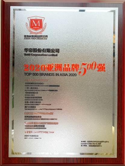 2020年第十五屆亞洲品牌盛典華帝榮獲多項(xiàng)大獎