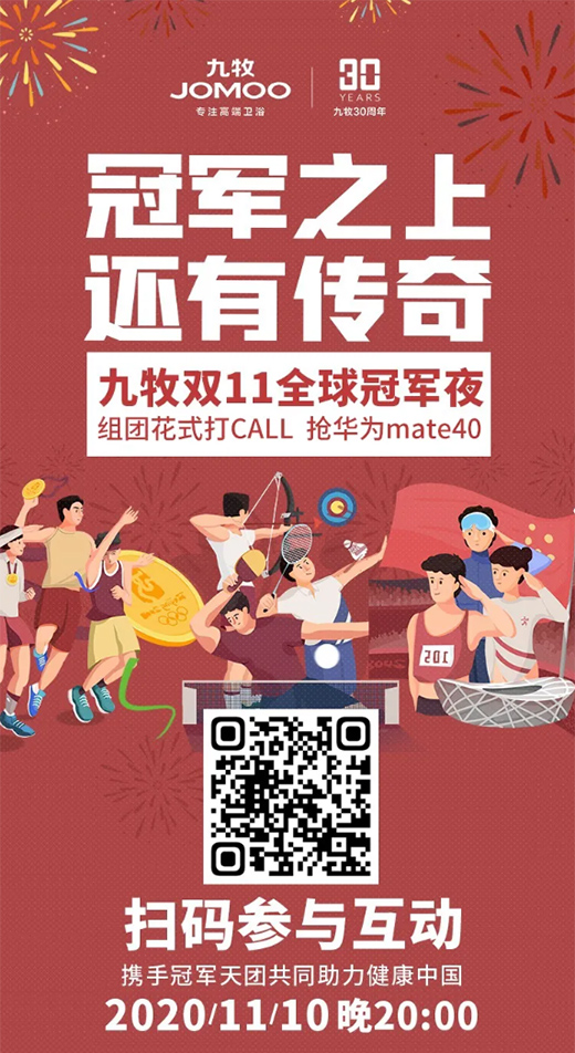 2020年11月10日晚8點,歡迎鎖定#九牧雙十一全球冠軍夜#和九牧一起,為冠軍喝彩,為自己喝彩!
