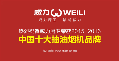 熱烈祝賀:威力廚衛(wèi)榮獲“中國十大抽油煙機品牌”