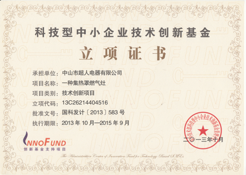 超人“內旋火”節(jié)能猛火技術獲國家科技部創(chuàng)新基金扶持
