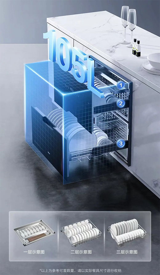 105L大容量,可一次性收納消毒60件餐具,滿足多口之家大量餐具需要消毒存儲的需求。內(nèi)腔不銹鋼材質(zhì),經(jīng)久耐用,長久守護家庭用餐健康。