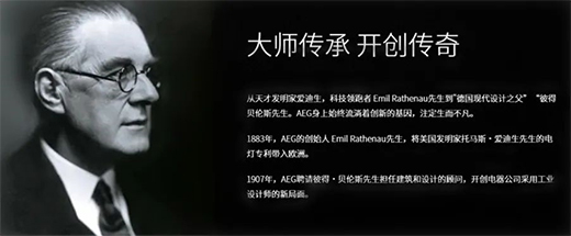 AEG是德國家電品牌 ,于1887年在德國柏林創(chuàng)立 ,1907年,AEG聘請“歐洲現(xiàn)代設(shè)計之父”彼得·貝倫斯擔(dān)任設(shè)計顧問,開創(chuàng)電器公司采用工業(yè)設(shè)計師的先河,奠定了“PERFEKT IN FORM UND FUNKTION”設(shè)計美學(xué)與卓越性能完美融合的設(shè)計哲學(xué)。