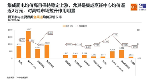 另外從數(shù)據(jù)來(lái)看,集成廚電均價(jià)處于行業(yè)高位。以今年1~10月數(shù)據(jù)為例,集成灶均價(jià)達(dá)8531元、集成洗碗機(jī)均價(jià)達(dá)9530元、水槽洗碗機(jī)均價(jià)達(dá)6361元,而集成烹飪中心均價(jià)更是高達(dá)19,207元,切實(shí)地拉高了整個(gè)廚電行業(yè)的價(jià)值,同時(shí)塑造了基于中國(guó)本土化的奢侈級(jí)廚電產(chǎn)品。
