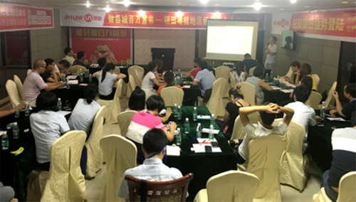 大會聚焦于總部對各經(jīng)銷商的支持方案以及“百萬店鋪”的成功分享。在粵桂地區(qū),銀田已成功打造多個百萬縣城客戶,更創(chuàng)造出銀田獨有的“遂溪模式”。會議上,銀田推廣部部長徐志華對“遂溪模式”進行詳細(xì)解說:“‘遂溪模式’是以銀田(遂溪)體驗店經(jīng)營模式為藍本,是一個成功的,可復(fù)制的經(jīng)營模式?!便y田(遂溪)體驗店從2015年7月加盟銀田后,不到半年時間銷售業(yè)績突破100萬,實現(xiàn)了多渠道分銷?!笆谌艘贼~不如授人以漁”。會議運用新穎的形式分享了優(yōu)秀經(jīng)銷商案例,打造可復(fù)制的成功模板,給予大家莫大的信心。這種可復(fù)制的經(jīng)營模式促使客戶在學(xué)習(xí)中提升,讓大家有了逆境發(fā)力的信心,通過成功的先例突破重圍,獲得可持續(xù)性發(fā)展。