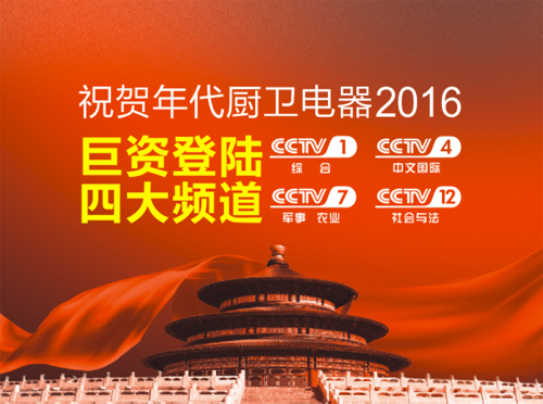 年代廚衛(wèi)品牌在宣傳方面可謂不惜重金,而且選擇收視率極高的央視。近日,年代廚衛(wèi)攜手央視1套、4套、7套、12套,將品牌再度展示給全國乃至全球的百姓面前。公益性的廣告宣傳,讓消費者對廚衛(wèi)電器產品的選擇有了更為深入的了解。