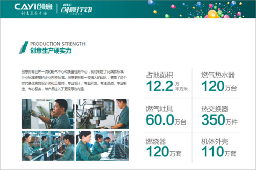 創(chuàng)意電器歷經(jīng)多年精心耕耘,目前年產(chǎn)量高居業(yè)內(nèi)前列,實(shí)現(xiàn)燃?xì)鉄崴?20萬臺,燃?xì)庠罹?0萬臺,熱交換器350萬件,燃燒器120萬套,機(jī)體外殼100萬套。以領(lǐng)先科技以及完美可靠品質(zhì),幫助中國家庭構(gòu)建美好廚房生活。除此以外,創(chuàng)意電器在產(chǎn)品研發(fā)設(shè)計(jì)、生產(chǎn)管理、運(yùn)營能力、門店鋪設(shè)等均取得成熟穩(wěn)健發(fā)展,品牌展現(xiàn)鮮活生命力與活力。短短十余載,創(chuàng)意電器成為國內(nèi)知名廚電品牌的代名詞,完善廚電系列市場產(chǎn)品線,收獲極佳口碑。
