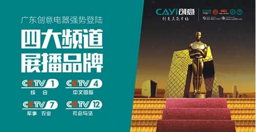 2016年創(chuàng)意電器品牌再攀高峰,熱烈祝賀中國著名廚衛(wèi)電器品牌創(chuàng)意電器,于11月28日強勢登陸CCTV-1、CCTV-4、CCTV-7、CCTV-12四大頻道。與央視攜手掀起一場強勢的品牌風暴,席卷全國。
