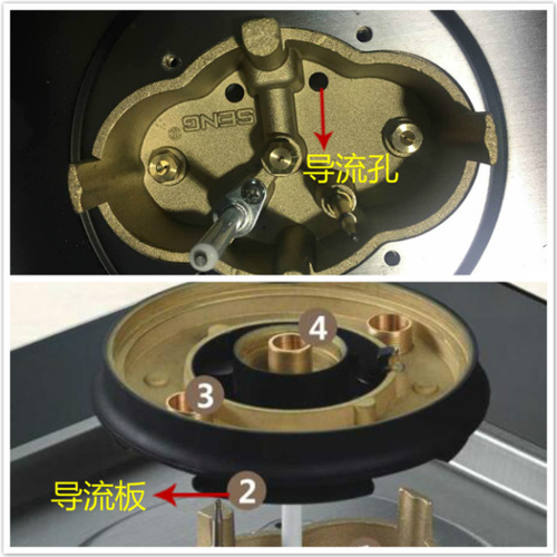 經(jīng)常在家燒飯做菜的朋友可能遇到過這種情況,燒菜時湯汁溢鍋滲入灶腔堵塞燃?xì)鈬娮欤瑢?dǎo)致熄火的狀況,森歌熾焱燃燒器為了解決這個問題,采用了雙重導(dǎo)流技術(shù),不僅在火蓋下部采用弧型導(dǎo)流設(shè)計(jì),能夠在發(fā)生溢鍋現(xiàn)象時有效將湯汁導(dǎo)入盛液盤內(nèi),更在底座內(nèi)部設(shè)置了2個導(dǎo)流孔,將意外流入底座內(nèi)部的積液通過導(dǎo)流管最終排至集油盒,從而杜絕噴嘴堵塞。