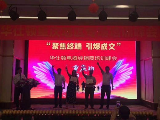 最終本次會議在一片熱烈的掌聲和歡呼聲中落下帷幕。通過本次培訓(xùn)峰會,重慶區(qū)域的新老經(jīng)銷商們都充分掌握了終端營銷及銷售工具,這不僅對終端成交率的提升有著重大的影響作用;此外,這更能使“華仕頓電器”品牌在全國范圍內(nèi)輻射開來有極大影響力!