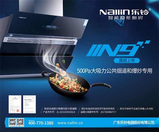 2017年,樂鈴廚電開啟3.0新時代,大產(chǎn)品戰(zhàn)略加速升級,吸油煙機(jī)品類研發(fā)更趨智能化、年輕化。期間,轟動行業(yè)的N9變頻吸油煙機(jī)和F6巨屏吸油煙機(jī)相繼上市。搭載免驅(qū)動油煙分離技術(shù)、塑封防水變頻電機(jī)、納米技術(shù)自潔風(fēng)輪等核心技術(shù)的N9再次把樂鈴吸油煙機(jī)科技化戰(zhàn)略推向全新高度!