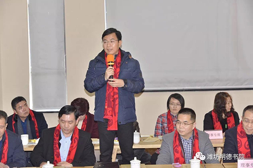 1月21日濰坊明德書院召開的一屆七次理事會上正式宣布:中山市銀田廚電有限公司成功成為了濰坊明德書院的新理事。