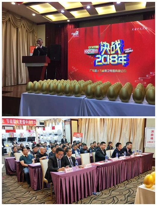 會議由遵義新真誠公司總經理鄭大平致開幕詞,鄭總表示2018年公司將全力注重廚房電器行業(yè),規(guī)劃2年時間把超人品牌遍布遵義百分九十。力爭3年內將超人做到前5強。