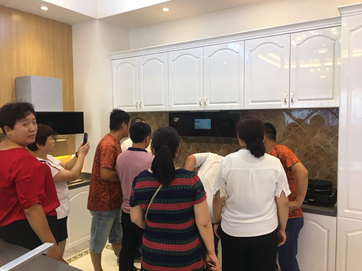 隨后,在華碩廚衛(wèi)蔡董、葉副總及營銷總監(jiān)劉總的陪同下,經(jīng)銷商家人們來到華碩廚衛(wèi)總部產(chǎn)品展廳,高端大氣、現(xiàn)代低奢的裝修風格讓家人們對終端店面的改造有了更深刻的理解。不少經(jīng)銷商紛紛向?qū)I(yè)人員“求學”,希望將更專業(yè)、更高端的門店裝修設(shè)計帶回自己的門店中,提升在當?shù)氐氖袌龈偁幜?此外,經(jīng)過專業(yè)人員的講解,家人們對華碩廚衛(wèi)的核心產(chǎn)品及最新精品都有了充分的了解。其中,精品A205更是受到不少家人們的青睞,表示要將該精品帶回家!