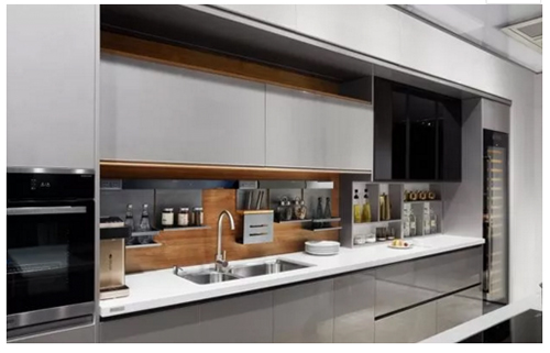 廚房除了櫥柜以外,臺(tái)面也是屬于面積比較大的一塊。一般來(lái)說(shuō)顏色的選擇要跟櫥柜有一定的差異性,不能跟櫥柜選一樣的顏色。